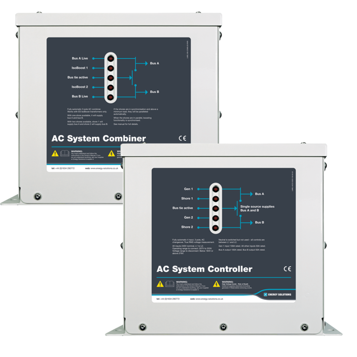 The IsoBoost Combiner allows two shore cords to be combined from the Energy Solutions IsoBoost/Marine Isolation Transformer range, allowing loads to be applied evenly across both cords.